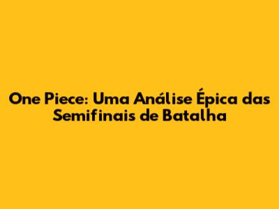 One Piece: Uma Análise Épica Das Semifinais De Batalha