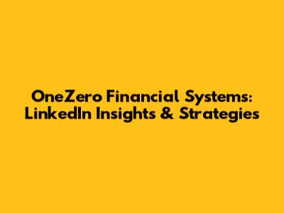 OneZero Financial Systems: LinkedIn Insights & Strategies