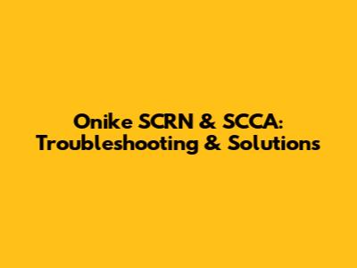 Onike SCRN & SCCA: Troubleshooting & Solutions