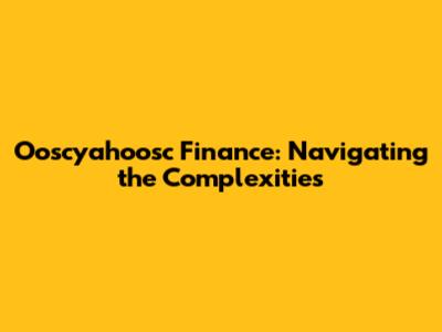 Ooscyahoosc Finance: Navigating The Complexities