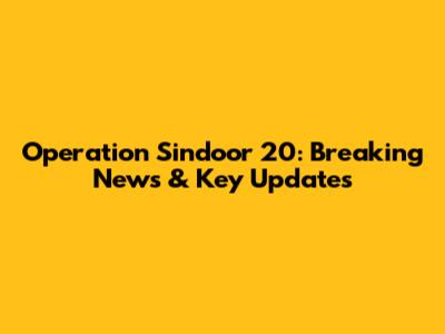 Operation Sindoor 20: Breaking News & Key Updates