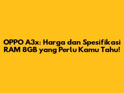 OPPO A3x menjadi perbincangan hangat di kalangan pecinta gadget, khususnya mereka yang mencari smartphone dengan performa mumpuni dan harga yang bersaing. Artikel ini akan mengupas tuntas tentang spesifikasi harga HP OPPO A3x RAM 8GB, mulai dari detail spesifikasi, keunggulan, hingga kisaran harga terbaru di pasaran. Jadi, buat kalian yang penasaran dengan smartphone ini, yuk simak ulasan lengkapnya!