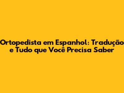 Ortopedista Em Espanhol: Tradução E Tudo Que Você Precisa Saber