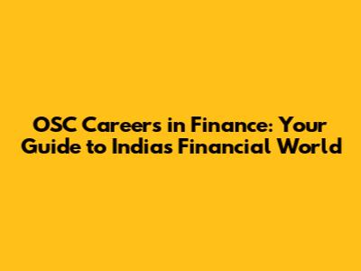 OSC Careers In Finance: Your Guide To India's Financial World