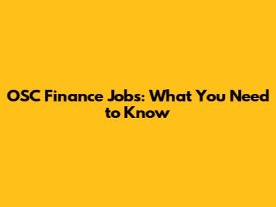 OSC Finance Jobs: What You Need To Know