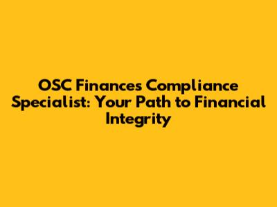 OSC Finances Compliance Specialist: Your Path To Financial Integrity