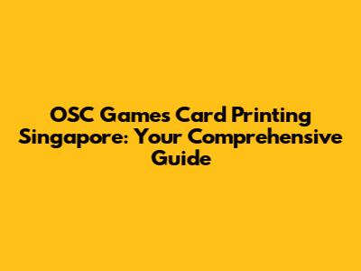 OSC Games Card Printing Singapore: Your Comprehensive Guide