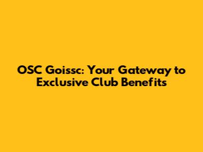 OSC Goissc: Your Gateway To Exclusive Club Benefits