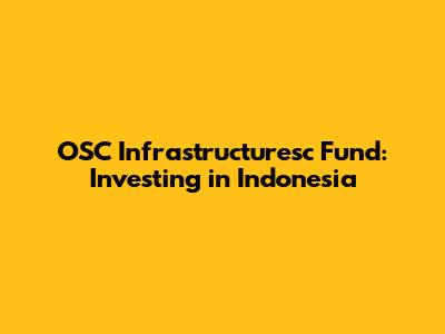 OSC Infrastructuresc Fund: Investing In Indonesia