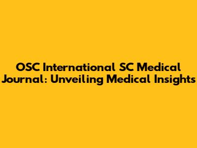 OSC International SC Medical Journal: Insights & Innovations