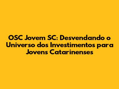 OSC Jovem SC: Sua Porta De Entrada No Mundo Dos Investimentos