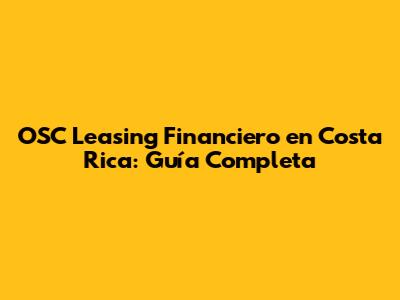OSC Leasing Financiero En Costa Rica: Guía Completa