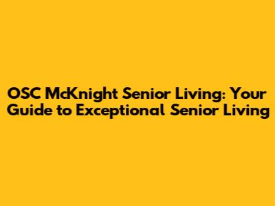 OSC McKnight Senior Living: A Comprehensive Guide