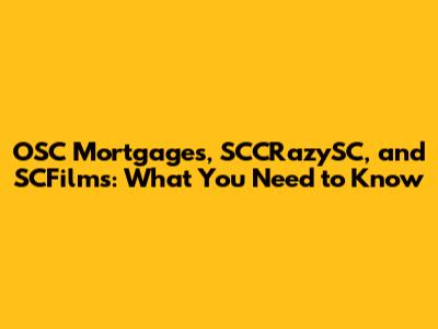 OSC Mortgages, SCCRazySC, And SCFilms: What You Need To Know