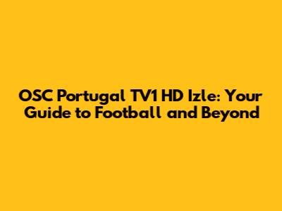 Hey everyone, sports fanatics! Are you looking to dive into the world of OSC Portugal TV1 HD izle? Well, you've come to the right place! This guide is your ultimate companion to understanding how to watch all the action, from thrilling football matches to other exciting programs. We'll explore everything you need to know, from the streaming options to the content you can expect. So, grab your snacks, settle in, and let's get started.