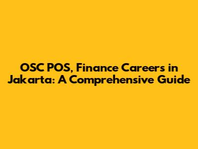 Hey guys! Ever thought about diving into the world of finance in the bustling city of Jakarta? It's a fantastic place to kickstart or boost your career, especially if you're interested in the intersection of finance and cutting-edge technology like OSC POS. Let's explore everything you need to know about navigating the OSC POS, finance sector, and building a killer career right here in Jakarta! This guide will be your go-to resource, whether you're a fresh graduate, a seasoned professional, or just curious about what opportunities await.