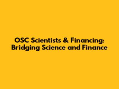 OSC Scientists & Financing: Bridging Science And Finance