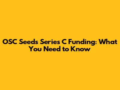 OSC Seed's Series C Funding: What You Need To Know