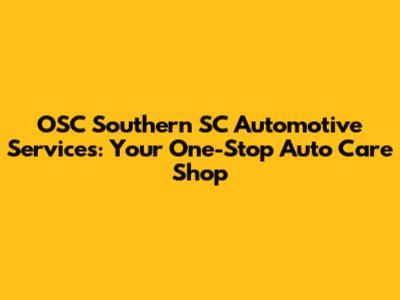 OSC Southern SC Automotive: Your Trusted Auto Care Partner