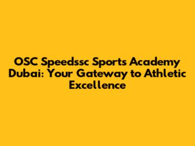 OSC Speedssc Sports Academy: Dubai's Premier Training