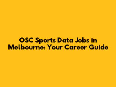 OSC Sports Data Jobs In Melbourne: Your Career Guide