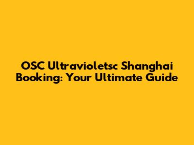 OSC Ultravioletsc Shanghai: Your Guide To Booking