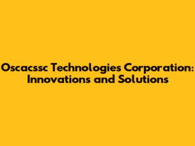 Oscacssc Technologies: Innovations And Solutions