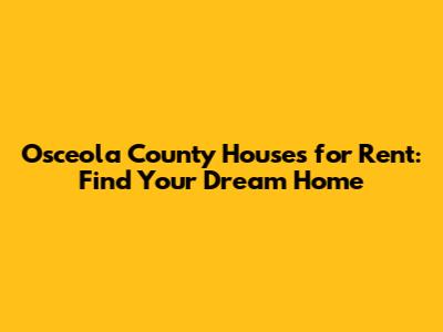 Osceola County Houses For Rent: Find Your Dream Home