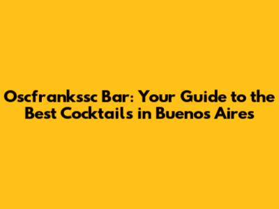 Oscfrankssc Bar: Your Guide To The Best Cocktails In Buenos Aires