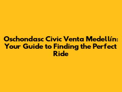 Hey guys! Are you on the hunt for a sweet ride in Medellín? Specifically, are you looking at an Oschondasc Civic? You've come to the right place! Finding the perfect car can be a daunting task, but with the right information and a little bit of patience, you'll be cruising around Medellín in your dream Civic in no time. This guide will walk you through everything you need to know about buying an Oschondasc Civic in Medellín, from where to find them to what to look for and how to negotiate the best deal. So buckle up, and let's get started!