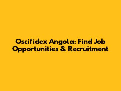Oscifidex Angola: Find Job Opportunities & Recruitment