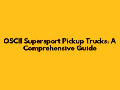 OSCII Supersport Pickup Trucks: A Comprehensive Guide