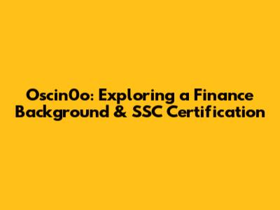 Oscin0o: Exploring A Finance Background & SSC Certification