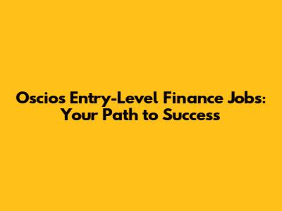 Oscios Entry-Level Finance Jobs: Your Path To Success