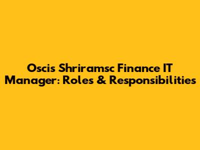 Oscis Shriramsc Finance IT Manager: Roles & Responsibilities
