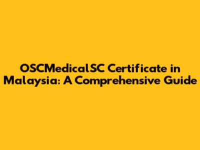 OSCMedicalSC Certificate In Malaysia: A Comprehensive Guide