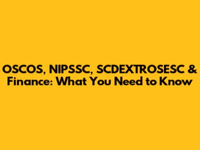 OSCOS, NIPSSC, SCDEXTROSESC & Finance: What You Need To Know