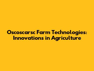Oscoscarsc Farm Technologies: Innovations In Agriculture