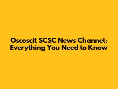 Oscoscit SCSC News Channel: Everything You Need To Know