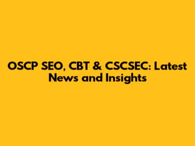OSCP SEO, CBT & CSCSEC: Latest News And Insights