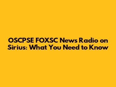 OSCPSE FOXSC News Radio On Sirius: What You Need To Know