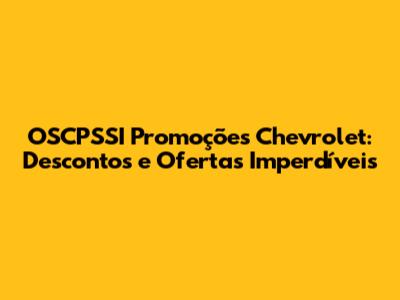 OSCPSSI Promoções Chevrolet: Descontos E Ofertas Imperdíveis