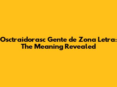 Osctraidorasc Gente De Zona Letra: The Meaning Revealed