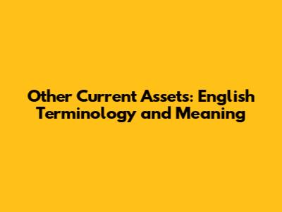 Other Current Assets: English Terminology & Meaning