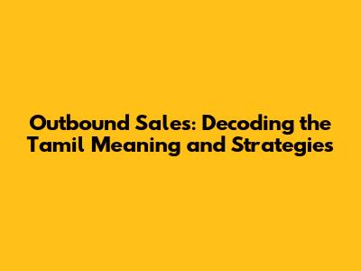 Outbound Sales: Decoding The Tamil Meaning And Strategies