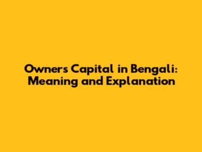 Owner's Capital In Bengali: Meaning And Explanation