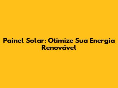 Painel Solar: Otimize Sua Energia Renovável