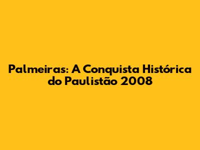 Palmeiras: A Conquista Histórica Do Paulistão 2008