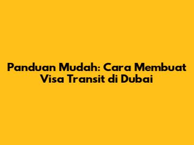 Panduan Mudah: Cara Membuat Visa Transit Di Dubai
