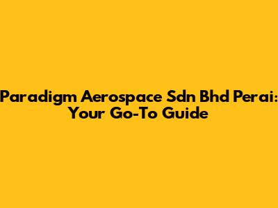 Alright, guys, let's dive into everything you need to know about Paradigm Aerospace Sdn Bhd in Perai! Whether you're a seasoned aerospace engineer, a student dreaming of the stars, or just curious about what goes on in this high-tech world, this guide is for you. We're going to break down what Paradigm Aerospace does, why they're important, and how they're contributing to the aerospace industry, especially in the Perai region.